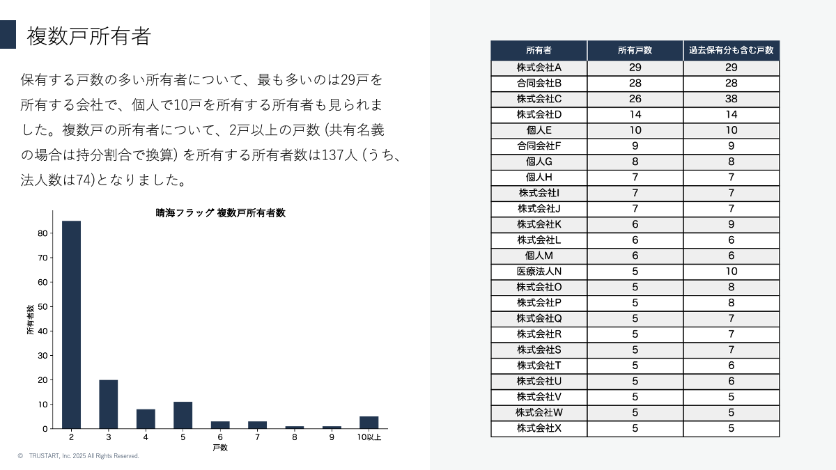 最大29戸を保有する法人が存在。法人所有の「集中度」を可視化