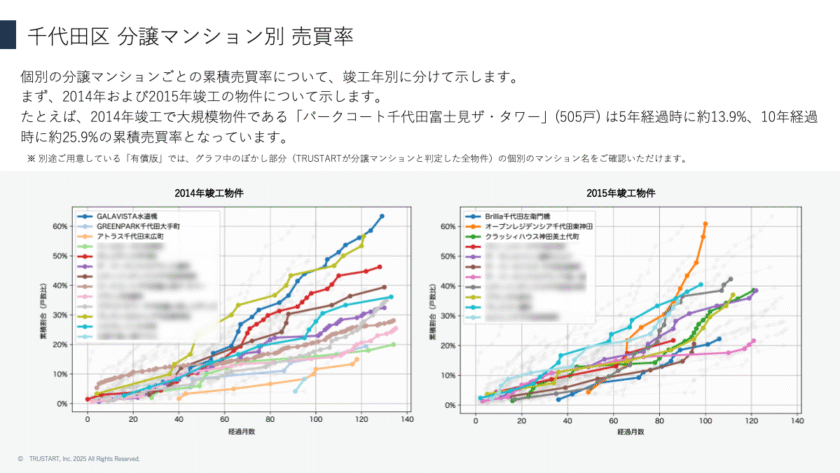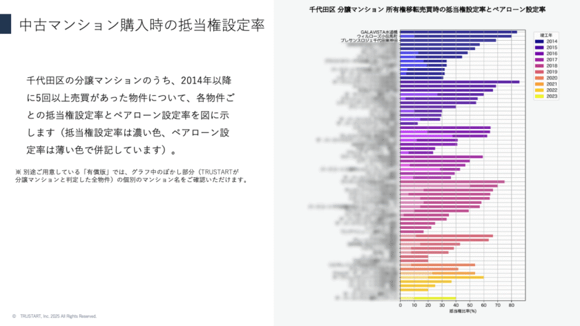 ※別途ご用意している「有償版」では、グラフ中のぼかし部分(TRUSTARTが分譲マンションと判定した全物件)の個別のマンション名をご確認いただけます。
